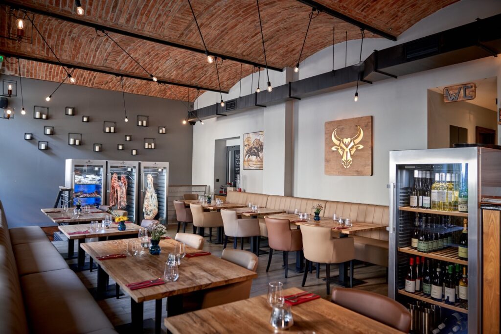 Správně připravit takové maso k jídlu už chce zkušenost a dobré vybavení. Jinak se zážitek z kvalitní suroviny rychle rozplyne. Doma to umí málokdo. Proto začal hledat v širším centru Prahy vhodné místo pro útulnou restauraci a dobrý gril, aby se práce se stařením mohla prezentovat co nejvíce zákazníkům. Prostory našel na Vinohradech blízko náměstí Míru. Restaurace Wood & Steak v Belgické 24 má 10 stolů, takže si vedle rodinné atmosféry zachovává i možnost individuálního přístupu k přání zákazníků. Nicméně zvládá i větší společnost, salonek pro třicet lidí je jen pár schodů pod restaurací.