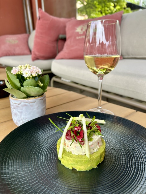 Hned na úvod potěší i carpaccio z langustýnek s yuzu dresinkem a červenou čekankou – jedinečné spojení jemnosti a svěžesti, které vás přenese na mořské pobřeží ukazuje, že v jednoduchosti je síla a jaro chutná nejlépe, když mu šéfkuchař dá prostor. K tomu sklenka Prestige Rosé od Château Minuty je klasika, která nikdy neomrzí – minerální, osvěžující a zároveň elegantní. Vzniká na slunných svazích poloostrova Saint-Tropez a kombinuje odrůdy Grenache, Cinsault, Tibouren a špetku Syrahu. V chuti dominují tóny bílých květů, růžového grepu a jahod s jemně slaným minerálním závěrem a k tomuto chodu (ovšem nejen k němu, a navíc si vystačí i samotné!) perfektní.