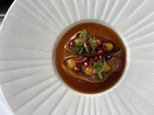 Také kachní foie gras s marakujovým coulis, granátovým jablkem a kerblíkem nemají chybu, navíc s kapkou fortifikovaného vína Kienberg Pineaux z Vinařství Vican. Toto víno je rarita, pálavská variace na francouzské Pineau des Charentes (více o této francouzské specialitě čtěte ZDE). Ve skle se zatřpytí odstíny rubínu, chuť evokuje švestky, višně v čokoládě, sladké koření s jemnými tóny dřeva. K foie gras je prima, důstojně by doprovodilo i výrazné sýry.