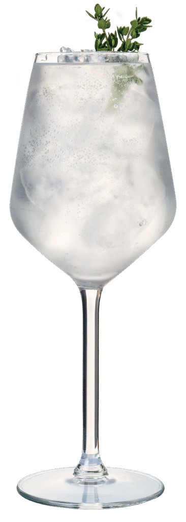 4 cl Bohemian ZERO Original, 20 cl Thomas Henry Botanical Tonic, citronový tymián, led