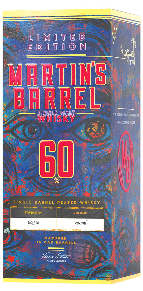 Každé z očí na Simonině etiketě nese vlastní význam: plamen představuje vášeň a živelnost, dubový sud trpělivost a čas a svatý Martin tradici a příběh. Tyto prvky dohromady tvoří specifický charakter whisky Martin’s Barrel. Etiketa působí jako pozvánka k zastavení a naslouchání. Stejně jako sud, který po letech zrání šeptá své příběhy těm, kdo se přiblíží a otevřou mu své smysly.