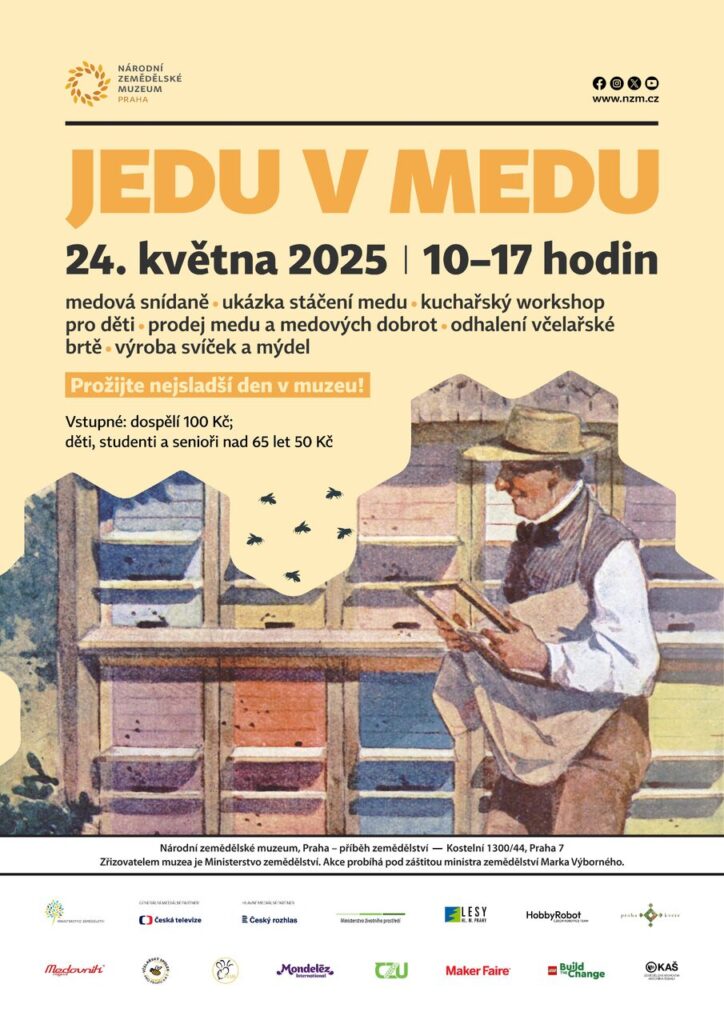 Kdo dorazí hned na začátek akce v deset hodin dopoledne, odstartuje sobotní den lahodnou medovou snídaní pod širým nebem. K zakousnutí a pití budou křupavé sušenky, teplý čaj, jedlé kvítky a všechna ta sladkost má původ v medu od muzejních včel ze střešní terasy. A to je jenom začátek. Protože dále je na programu stáčení medu, po medobraní následuje samozřejmě degustace téhle rozmanité a přepestré sladké dobroty. Dozvíte se, co jsou brtě. A taky vše o včelách, čmelácích a hmyzu vůbec. Vedle poslouchání a ochutnávání však přijde i prostor pro tvoření a taky soutěžení. Sobota to bude nabitá dojmy, informacemi i sladkým potěšením. A to v Národním zemědělském muzeu v Praze až do odpoledne do 17 hodin.