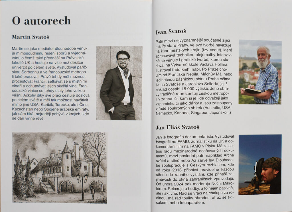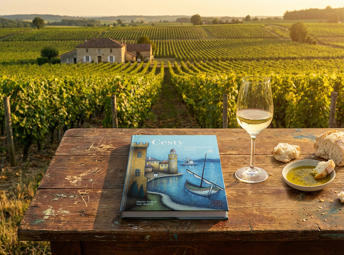 Nová kniha rodinné autorské trojice Martina, Jana E. a Ivana Svatošových vás vezme na okouzlující putování francouzskými vinicemi – od legendárního městečka, které dalo název slavné hře, aaž po pyrenejské výšiny, kde se rodí příběhy i vína světového věhlasu. Vydáte se do Gaskoňska, kde kdysi pobíhal mladý d’Artagnan, projdete slavnými uličkami Carcassonne, ano, právě o něm už byla řeč, zavítáte do kolébky Merlotu a budete objevovat krajinu, která inspirovala malíře, sochaře i slavné literární postavy. Autoři vás zavedou do míst, kde se čas zpomaluje — do ospalých vesnic, k větrným mlýnům, na prastaré vinice a k vinařům, kteří stále věří, že víno je víc než nápoj. Malíř Ivan Svatoš tak se svými syny otevírá brány do míst, kde se krajina nejenom mění v obraz ale kde se těměř na každém vhodném svahu ukrývá nejedno vinařské dobrodružství. Martin Svatoš, znalec vína a autor již vyprodané publikace o francouzských vinicích, propůjčil knize své jedinečné postřehy, příběhy a humor. Jeho texty spojují osobní zkušenosti, znalosti a hloubku člověka, který francouzským vinicím zasvětil kus života.Obrazy Ivana Svatoše zachycují jedinečeným stylem nálady krajiny i kouzlo starých měst. A fotograf Jan E. Svatoš doplnil vše o působivé záběry, které zachycují atmosféru tak věrně, že téměř ucítíte teplo slunce a šum vinných listů.