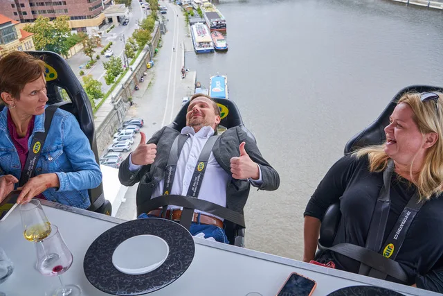 Ale pozor, oblíbená akce Dinner in the Sky se koná pouze první dva prodloužené zářijové víkendy! A to od 5. do 8. září a pak od 12. do 15. září. Přijít můžete na tříchodový oběd, čtyřchodovou večeři či na večeři při západu slunce. Cena za menu včetně nápojů a uvítacího drinku začíná na 3 190 Kč za osobu. Rezervace je nutná, stejně jako výběr menu předem – masového či vegetariánského.