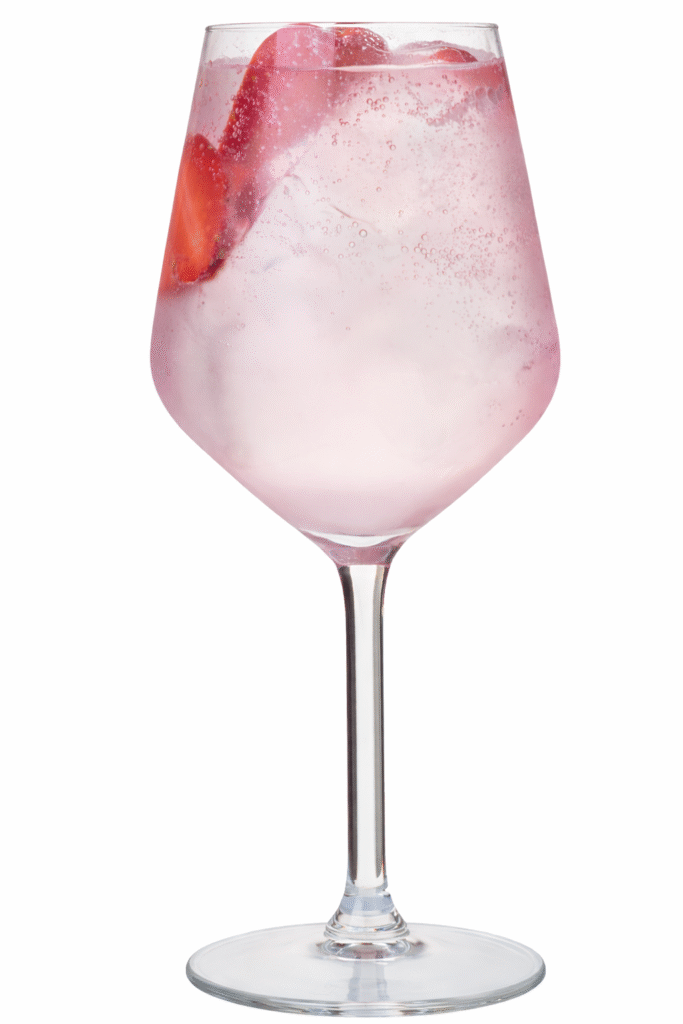 4 cl Bohemian ZERO Pink, 20 cl Thomas Henry Tonic Water, sušené jahody, led