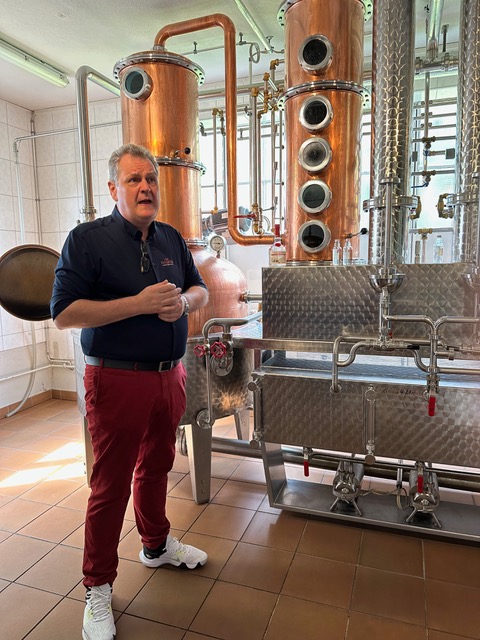„Známe je osobně a ovoce hned ručně třídíme, pečlivě kontrolujeme a zbavujeme všech nečistot, případně špatných kusů. Pak je podrceno a putuje do nerezových tanků,“ vysvětluje pečlivě celý proces výroby obchodní zástupce podniku Stephan Kopp. A z jeho slov je jasné, že tady se zkrátka věří, že kvalita výsledné pálenky se rozhoduje už na stromě – destilace je „jen“ uměním nepokazit to, co vytvořila příroda.